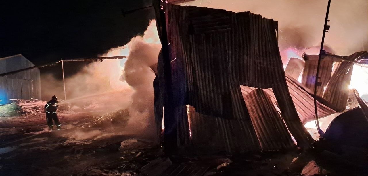В 00:51 из Чудово пришло сообщение, что горит одноэтажный ангар на территории местной пилорамы.