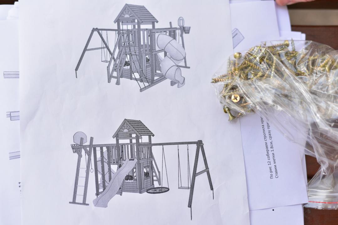 Накануне комплекс был доставлен на объект и сейчас начались работы по его установки. Конструкция будет достигать порядка 6 метров и включать в себя различные элементы, такие как качели, горка, лестницы.