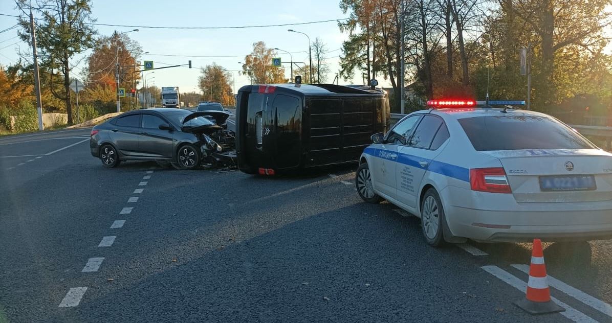 В Спасской Полисти на М10 опрокинулся микроавтобус