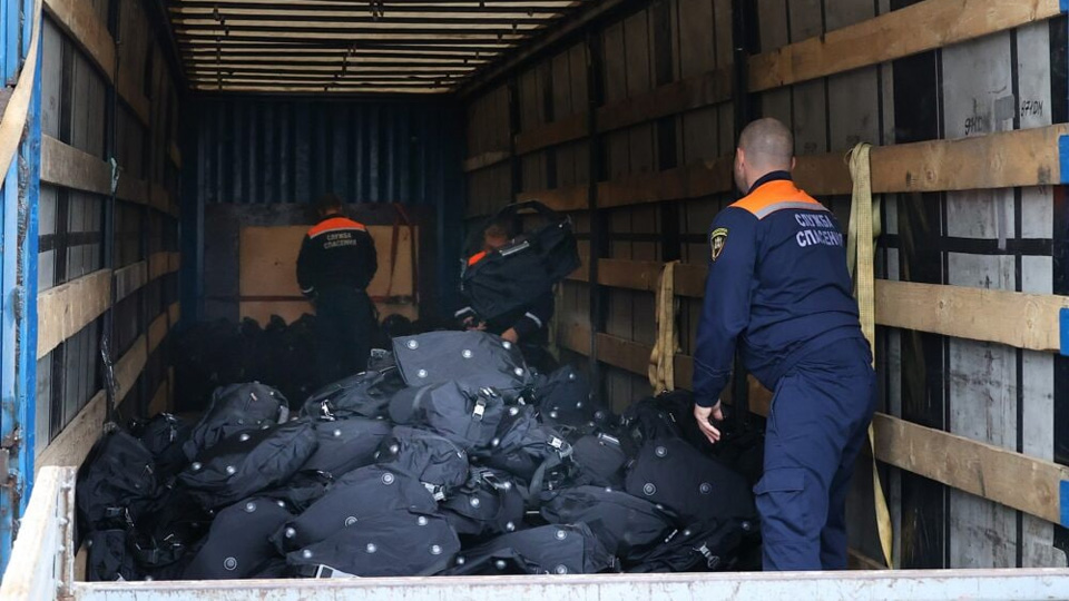 По официальным данным, в наборы, собранные благотворительным фондом «Сохрани жизнь», вошли спальные мешки, аптечки, фонарики, маскировочная сетка, коврики.