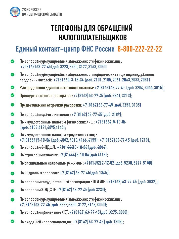 В УФНС РОССИИ ПО НОВГОРОДСКОЙ ОБЛАСТИ ИЗМЕНИЛИСЬ ТЕЛЕФОННЫЕ НОМЕРА