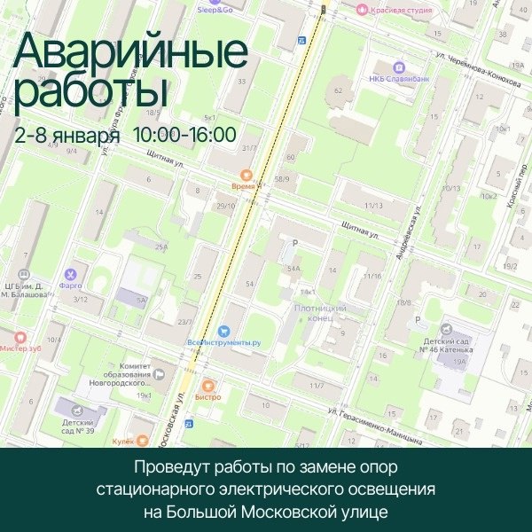 «Внимание, водители! Ограничение движения на Большой Московской улице в Великом Новгороде с 2 по 8 января 2025 года»