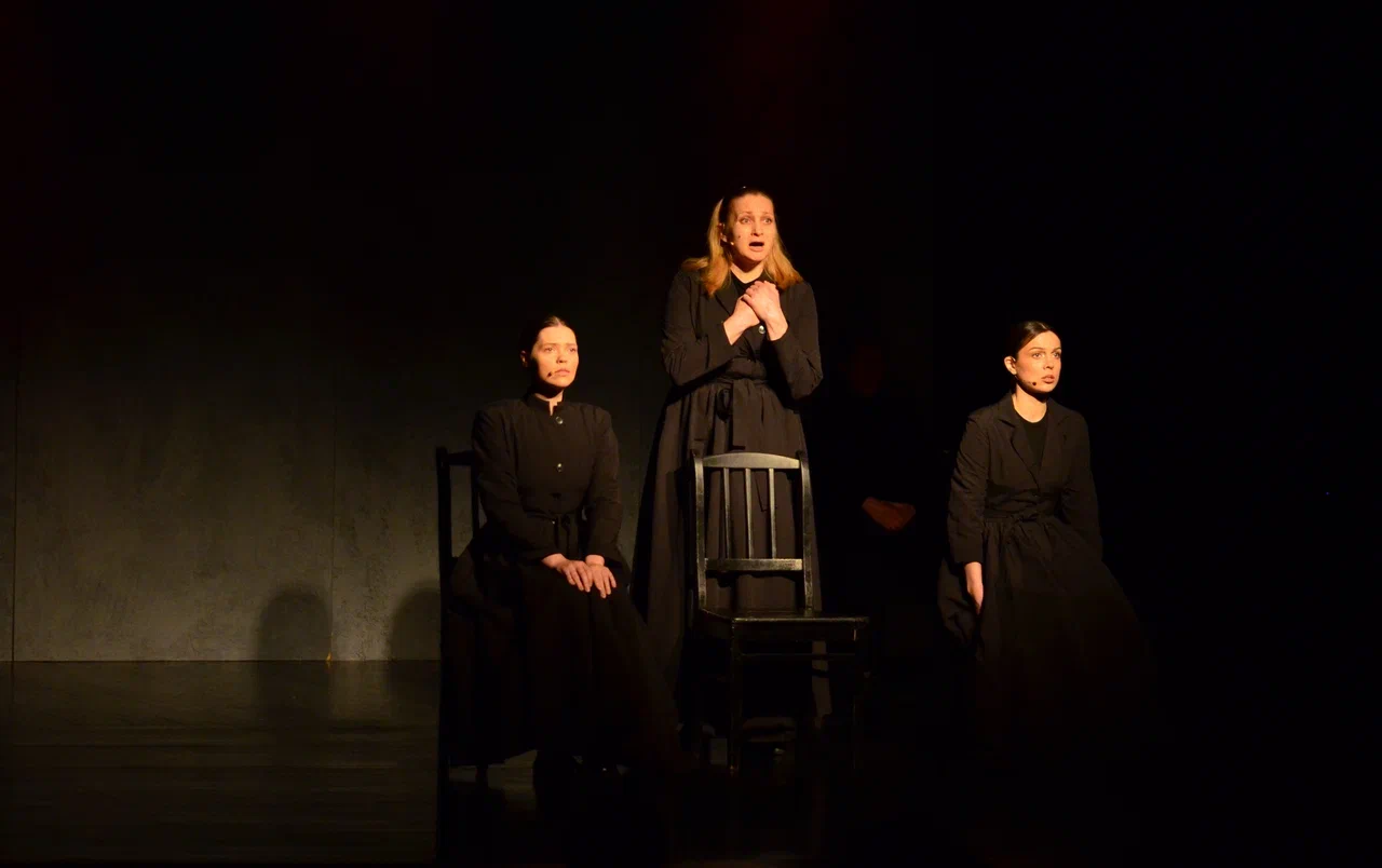 Трагичность и серьезность строк усиливает визуальная составляющая спектакля. Все актеры одеты в черное, художник по свету Лариса Дедух использует в световой палитре желтый, белый и красный цвет для подчеркивания отдельных моментов.