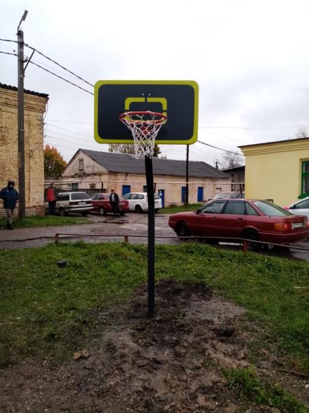 На детской игровой площадке по ул. 1-Мая установлены детский спортивный комплекс, кольцо детское баскетбольное и стол шахматный со скамьями.