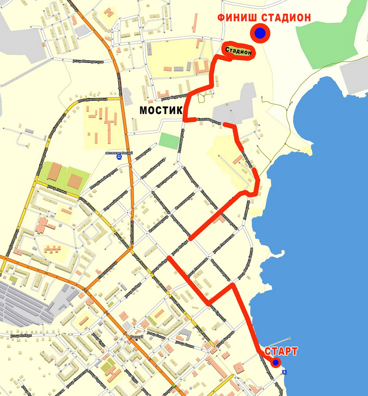 Маршрут: ул. Февральская > ул. Крупская > ул. Победы > к Нац. парку > ул. Белова > Плодозавод > ул. Лесная > ул. Тракторная > Архиерейский ручей> > ул. Механизаторов > Стадион (2 круга)