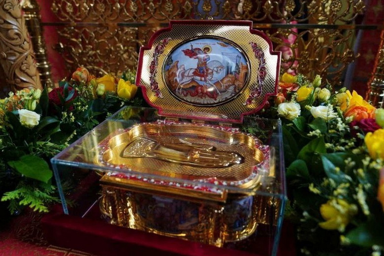 «Всероссийский молебен о Победе» – принесение мощей великомученика Георгия Победоносца начался 6 мая после Патриаршего богослужения в московском Георгиевском храме на Поклонной горе. По благословению Святейшего Патриарха Московского и всея Руси Кирилла святыня посетит около 100 городов во всех 89 регионах России, чтобы каждый смог попросить помощи у этого великого святого, в том числе о наших воинах.