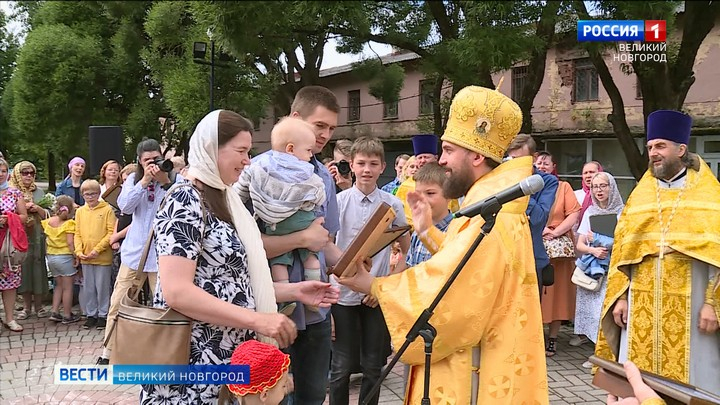 День Семьи, любви и верности в Новгородской области начался с духовных событий - с божественной литургии и молебна в православных храмах святым благоверным князю Петру и княгини Февронии Муромским. Святые супруги прославились благочестием и милосердием, скончались в один день, приняв перед этим монашеский постриг. Святые Петр и Феврония являются образцом христианского супружества для всех православных, среди которых и прихожане Покровского собора, и многодетные семьи Симсон и Ивановы.