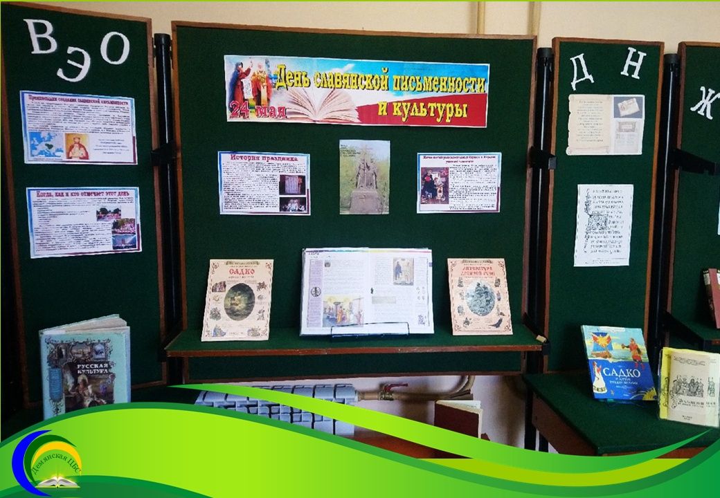 В центральной районной библиотеке в эти дни оформлена книжно-иллюстративная выставка «День славянской письменности и культуры». На выставке можно познакомиться с миром русской письменности. Литература, представленная на ней, расскажет об истории письма и русской книжности, о создателях славянской письменности, равноапостольных святых Кирилле и Мефодии. Адресована книжная выставка широкому кругу читателей.