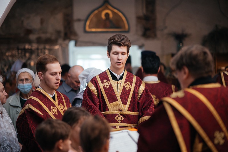 Его Преосвященству сослужили: штатный клирик Софийского собора иерей Николай Полозов и штатный клирик Покровского собора иерей Михаил Терещук.