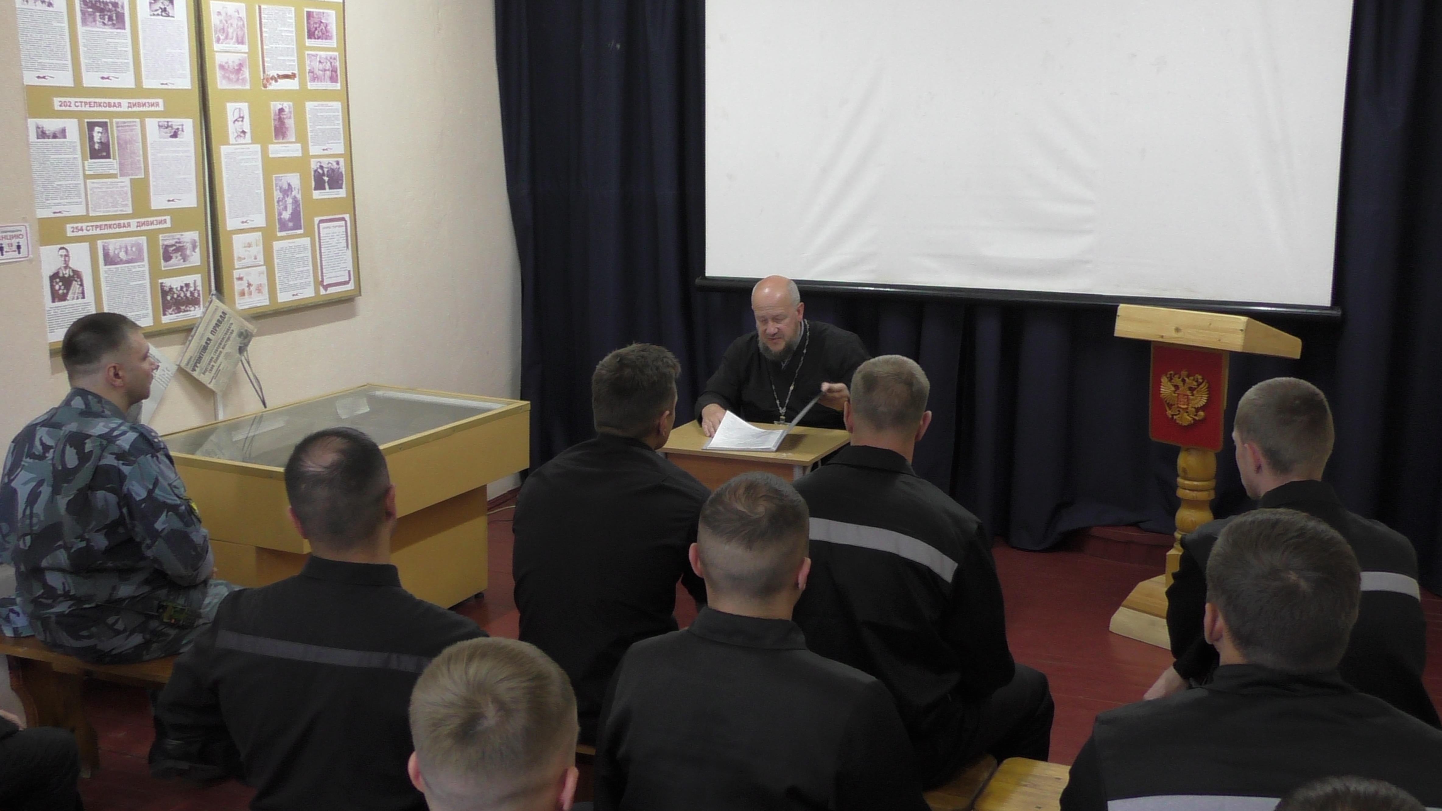 Исправительную колонию № 9 УФСИН России по Новгородской области посетил помощник начальника УФСИН по организации работы с верующими Александр Круглов, который провел просветительскую беседу с осужденными,