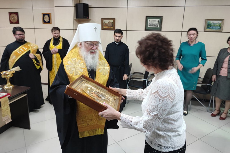 По завершении богослужения митрополит Лев обратился ко всем работникам нотариальной палаты со словами поздравления, добрыми пожеланиями и в благословение на предстоящие труды подарил образ Казанской иконы Божией Матери.