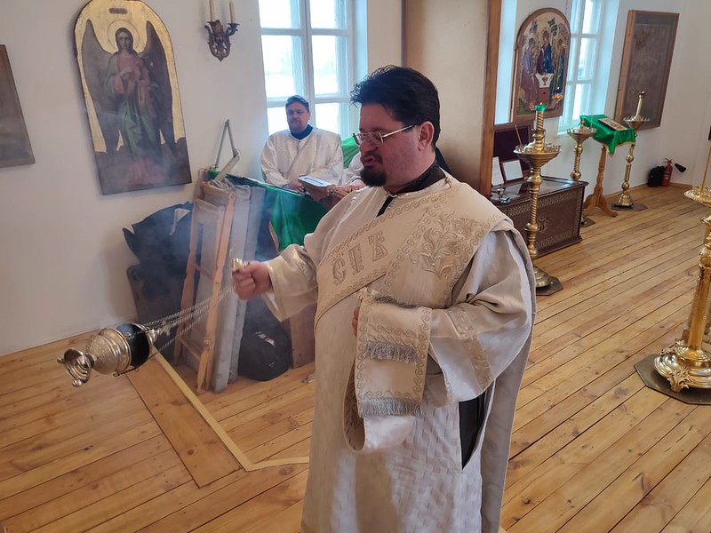 Его Высокопреосвященству сослужил клирик храма святого апостола Филиппа иерей Павел Демочкин. Богослужение сопровождалось пением мужского хора Новгородского духовного училища под управлением регента диакона Андрея Каурова.