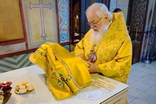 Его Высокопреосвященству сослужили: клирики Софийского собора прот. Святослав Цхай и иерей Николай Полозов.
