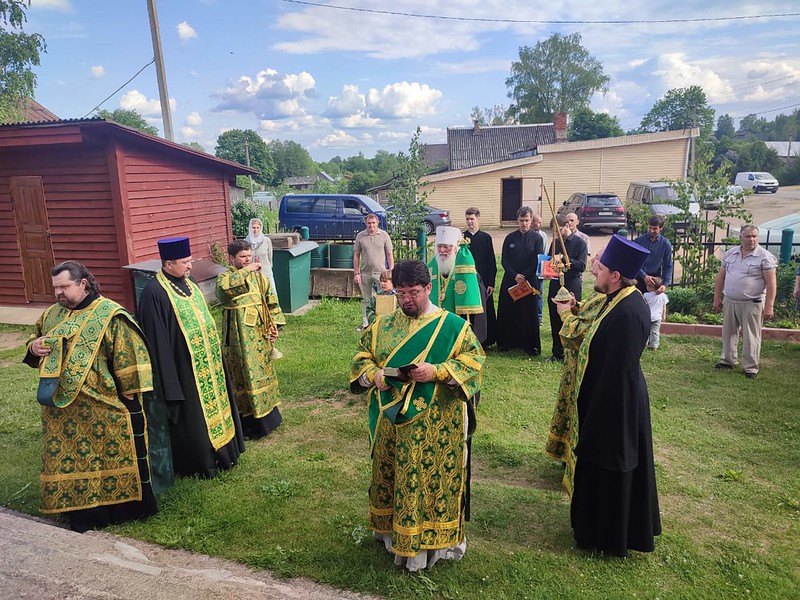 11 июля 2022 года, в канун праздника Святой Троицы, митрополит Лев совершил всенощное бдение в Троицком храме пос. Крестцы.
