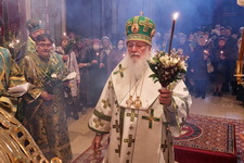 Завтра православные верующие будут отмечать двунадесятый праздник - Вход Господень в Иерусалим или Вербное воскресенье. Напомним, что в церковной практике праздник начинается уже с вечера, с всенощного бдения, и длится до вечера следующего дня. Сегодня, 16 апреля, митрополит Лев совершил праздничное всенощное бдение в Софийском соборе.