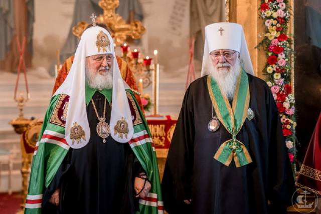 Патриарх Кирилл вручил митрополиту Льву орден преподобного Сергия Радонежского