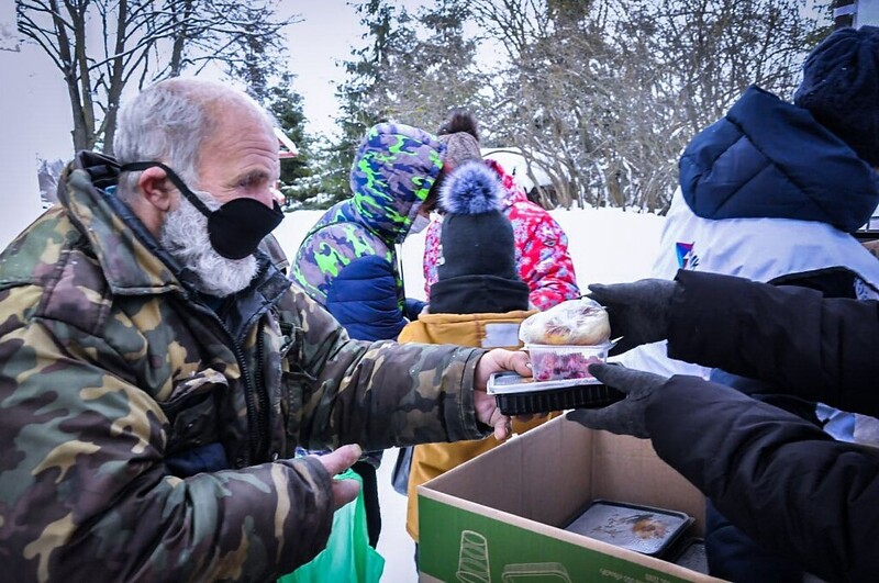 9 января на территории храма Успения Божией Матери в Колмово добровольцы движения «Родные люди» при поддержке Новгородского металлургического завода организовали рождественский обед для нуждающихся.