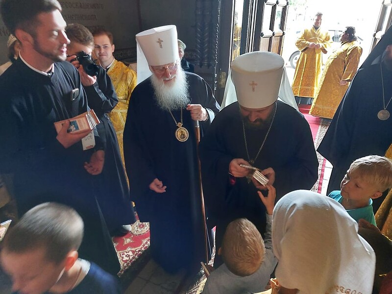 После Литургии было совершено чтение канона Пресвятой Богородице, «поемого во всякой скорби душевной и обстоянии» перед иконой Божией Матери «Знамение» и славление святым апостолам Петру и Павлу.