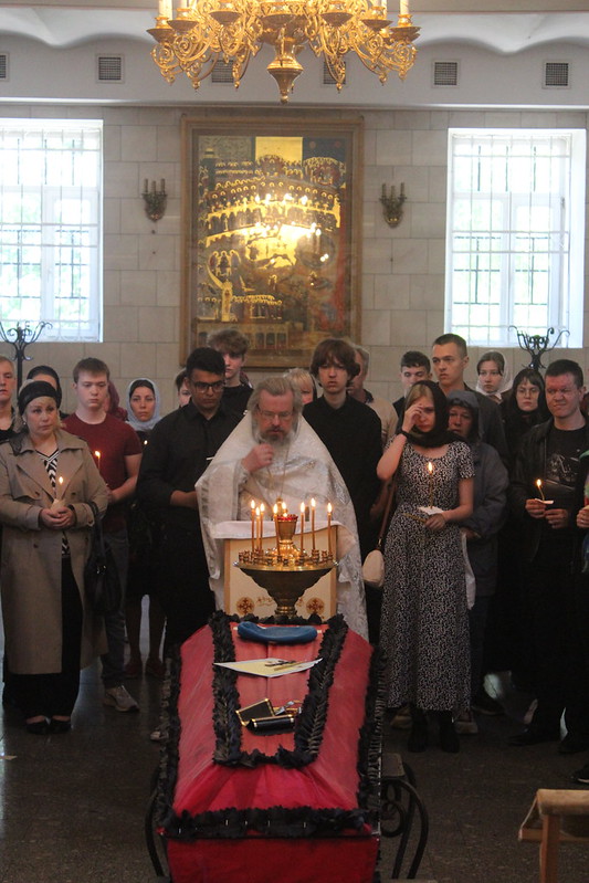Отпевание совершил председатель Епархиального отдела по взаимодействию с Вооружёнными Силами и правоохранительными учреждениями, настоятель Покровского собора протоиерей Игорь Беловенцев.