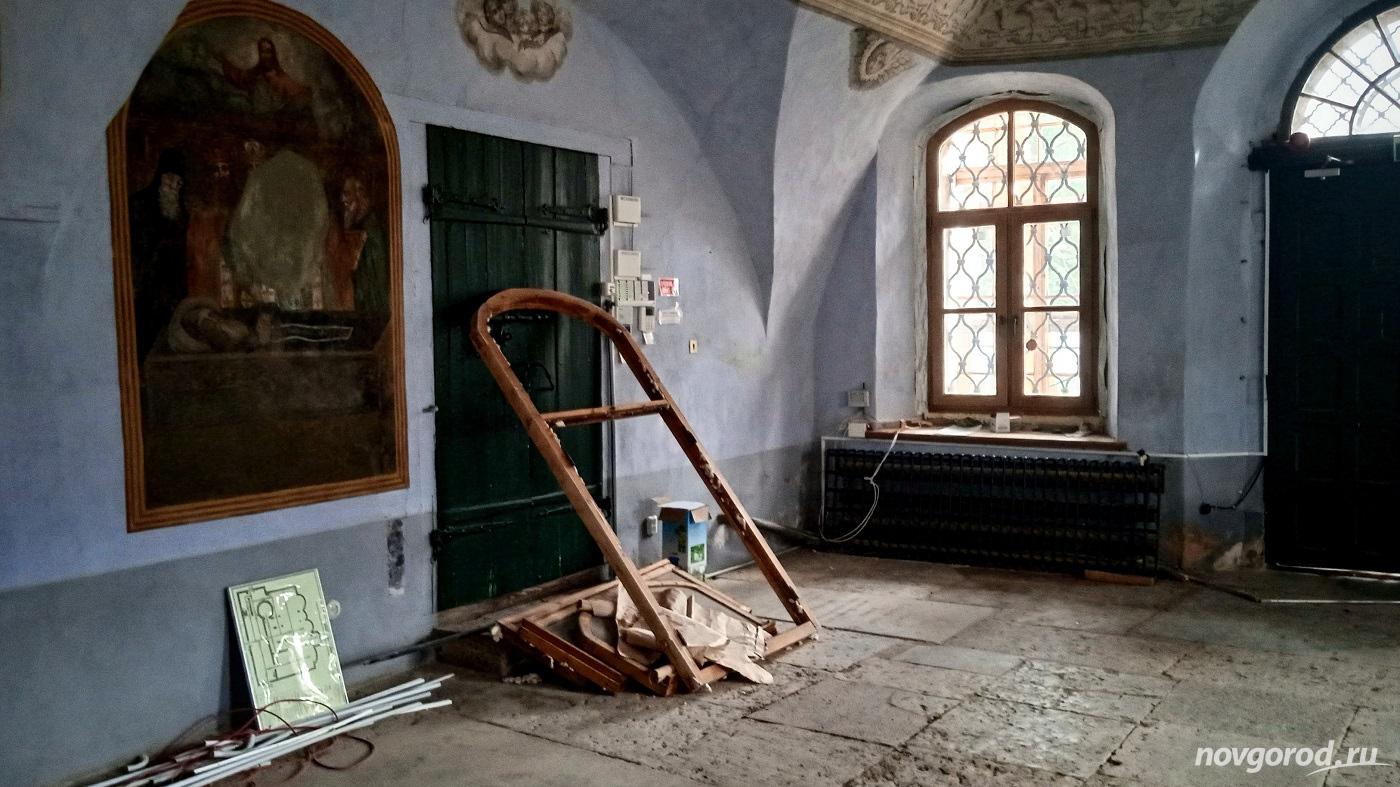 © Лев Сёмин / интернет-издание «Новгород.ру»Сейчас подрядчик обустраивает строительную площадку и укрепляет реставрационные леса. Новый контракт предусматривает завершение работ в 2024 году. Намечены докомпоновка и вычинка кирпичной кладки, инъектирование, замена окон и дверей, реставрация металлических элементов, замена кровли основного объёма. Также планируется укрепить древние фундаменты на булыжных основаниях, устроить водосточную и антиобледенительную системы, пандус для людей с ОВЗ.