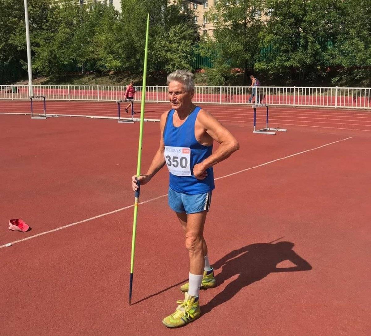 Среди спортсменов возрастной группы 80-84 лет Анатолий Косиков занял второе место в метании диска и стал чемпионом в метании копья.