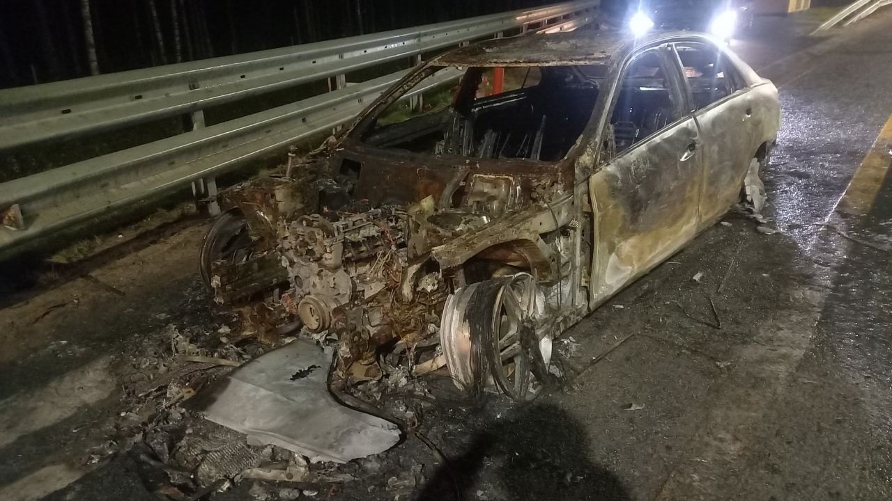 На трассе М11 в Маловишерском районе сгорел Mercedes
