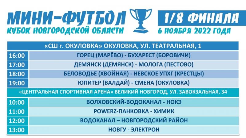 Приглашаем всех любителей футбола на кубок Новгородской области по мини-футболу