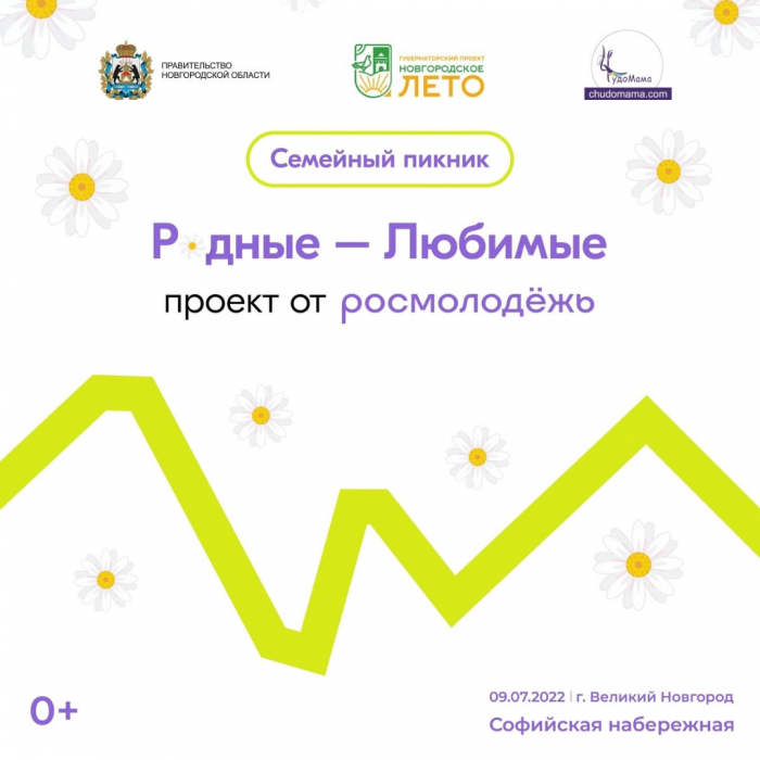 В субботу, 9 июля 2022 года на Софийской набережной, у новгородского Театра драмы им. Ф.М. Достоевского пройдет региональный фестиваль «Семейный пикник» в рамках проекта Росмолодежи «Родные. Любимые».