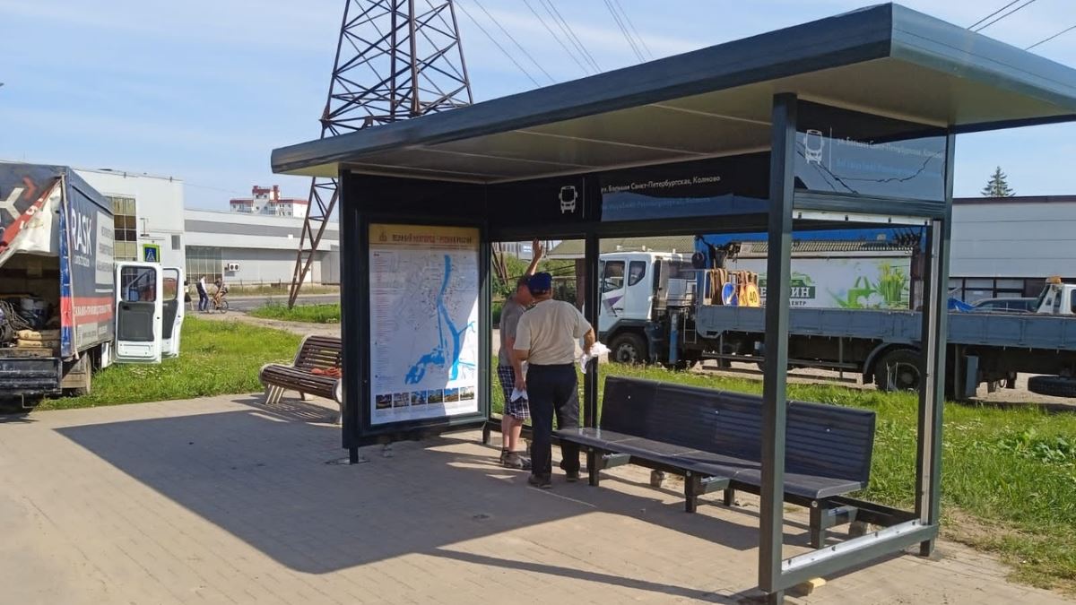 В Великом Новгороде приступили к установке новых остановочных павильонов. До сентября в городе установят 25 павильонов с урнами и скамейками.