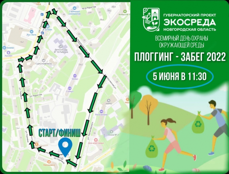 В День эколога, 5 июня, в Великом Новгороде будет дан старт новой экологической акции: состоится плоггинг – забег на дистанцию 1,5 км, совмещенный со сбором мусора. Таким образом организаторы акции – волонтеры губернаторского экологического проекта «Экосреда53» – предлагают горожанам совместить приятное с полезным и сделать часть улиц Германа, Новолучанской и Черняховского и территорию Окольного вала чище от мусора.