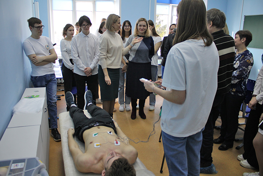 Гимназисты учатся снимать электрокардиограмму