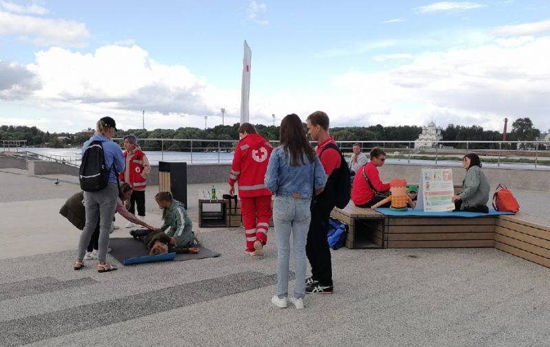 Мастер-класс по первой помощи от Российского красного креста прошёл на Софийской набережной в рамках фестиваля «Новгородское лето».