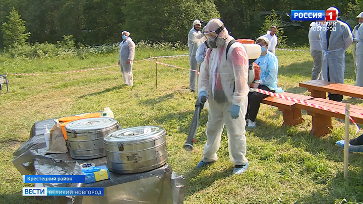 Около 80-ти специалистов из Новгородской области и еще семи регионов России провели совместные учения по ликвидации условного очага высокопатогенного гриппа птиц в Крестецком районе. Согласно легенде, рыбаки обнаружили в одном из водоемов мертвых уток. Прибывшие на место ветеринары, после осмотра птиц, предположили, что причиной их гибели могла стать инфекция. Это подтвердили и результаты исследований взятых на пробу анализов. На месте ЧП работали несколько групп: кто-то сжигал павшую птицу в передвижном крематории, кто-то устанавливал контрольно пропускные пункты при выезде из карантинной зоны, кто-то проводил дезинфекцию местности, а кто-то обходил местных жителей, домашнюю птицу которых, по учениям, было решено не забирать на убой, а вакцинировать. Сценарий условный, но месяц назад всё было по-настоящему в соседнем Окуловском районе, где обнаружили очаг птичьего гриппа, к слову, впервые с 1979-ого года в Новгородской области.