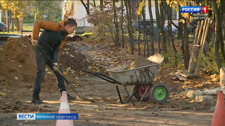 В Великом Новгороде около клиники №2 на улице Яковлева идёт благоустройство сквера