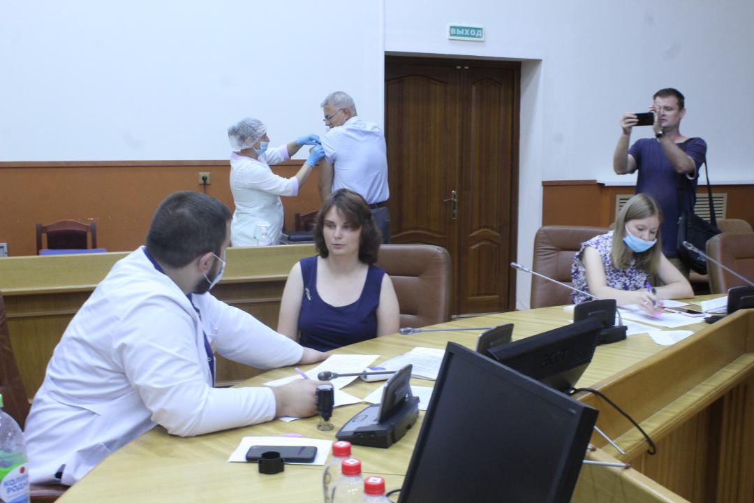 Сегодня, 24 августа 2022, около 30 сотрудников администрации Великого Новгорода и подведомственных учреждений сделали прививки от Covid-19 вакциной Спутник V на рабочем месте.