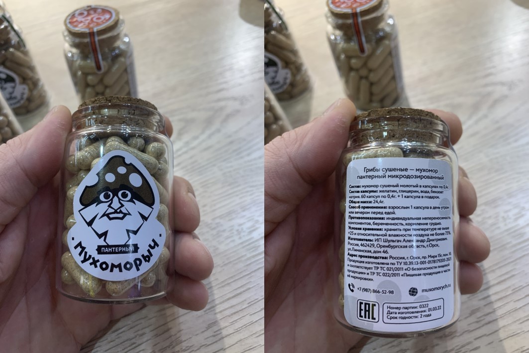 Так, в ходе контрольно-надзорных мероприятий в г.Орске Оренбургской области, выявлена продукция "Грибы сушёные – мухомор пантерный микродозированный" торговой марки «Мухоморыч», не соответствующая установленным требованиям по микробиологическим показателям и по содержанию токсичных элементов (кадмий и ртуть). Продукция не заявлена как БАД к пище и действие декларации ЕАЭС № RU Д-RU.PA03.В.62183/21 от 17.12.2021 будет прекращено в установленном порядке.