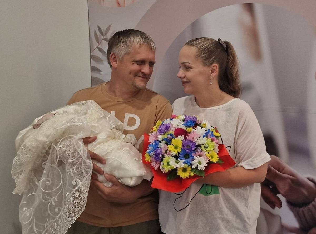 Сегодня, 1 июля, мама и малышка выписались из перинатального центра. Есения появилась на свет весом 2932 грамма и ростом 50 см. На выписку пришла вся семья: папа и четыре дочки.
