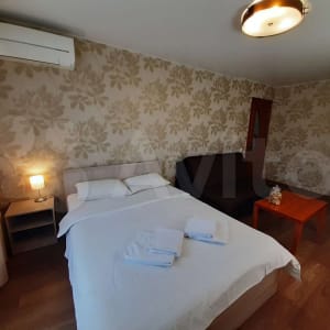 В комнате одна двуспальная кровать и раскладной двуспальный диван.