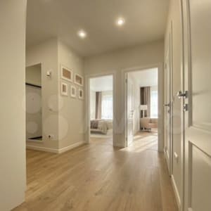 В квартире установлены межкомнатные двери «Волховец», уложен водостойкий ламинат, сделаны натяжные потолки с разным сценариями освещения, продуманное расположение розеток 220, ТВ, интернет.
