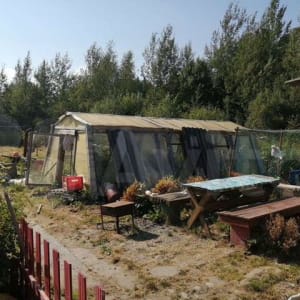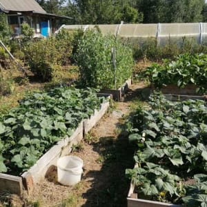 Участок 10 соток, участок разработан .На участке есть хоз. постройки, готовый сруб для бани( в нем временно живут курицы,куриц тоже можем оставить по желанию) ,теплица( помидоры и перец) ,не большой водоем для полива огорода, готовые к посадки грядки, большое количество плодовых насаждений чёрная и красная смородина,крыжовник,малина,клубника,слива, яблони. Участок огорожен со всех сторон , со стороны дороги профнастил , а остальной периметр сетка рабица. Центральная дорога в отличном состоянии по улице дорога из гравия . На улице дружные соседи.
